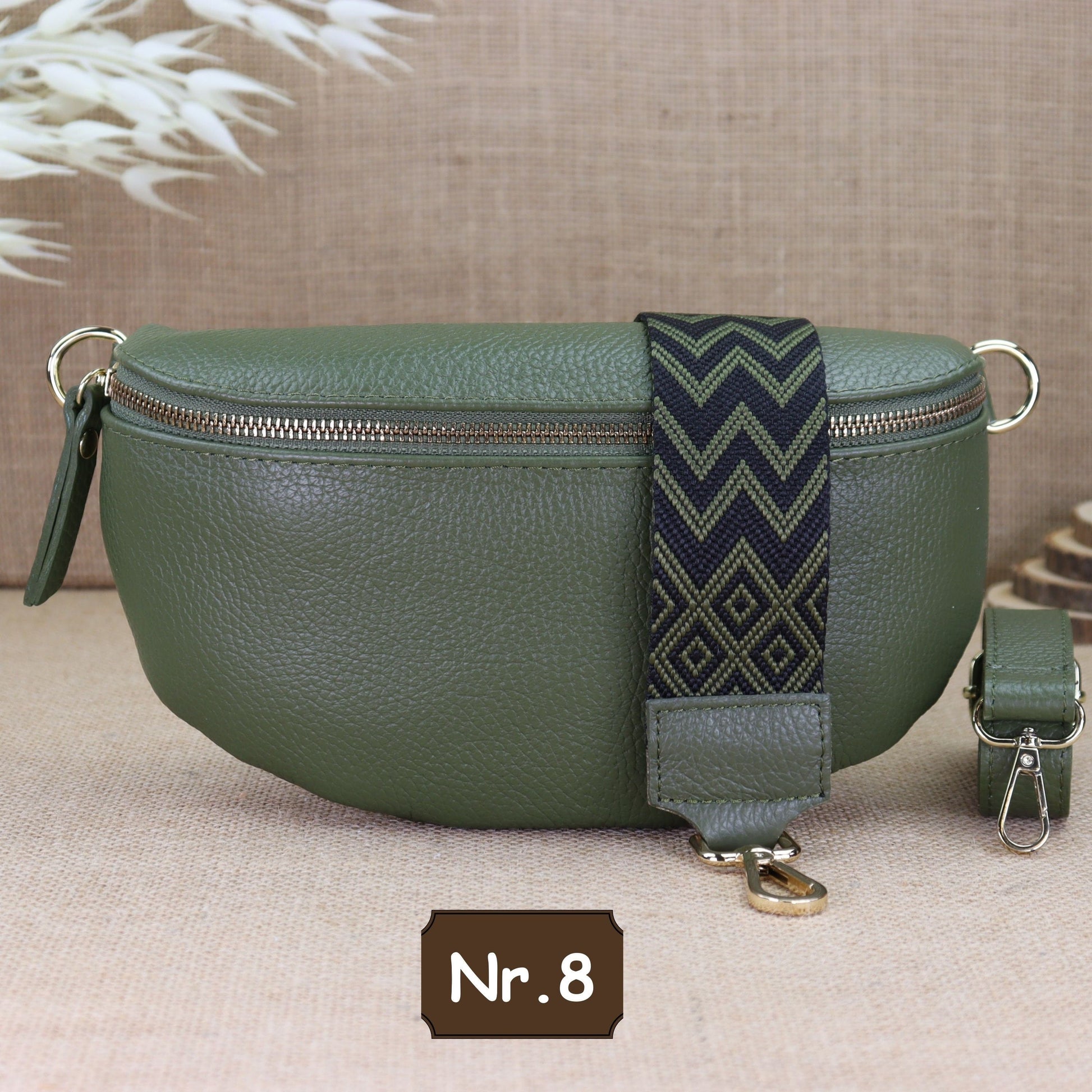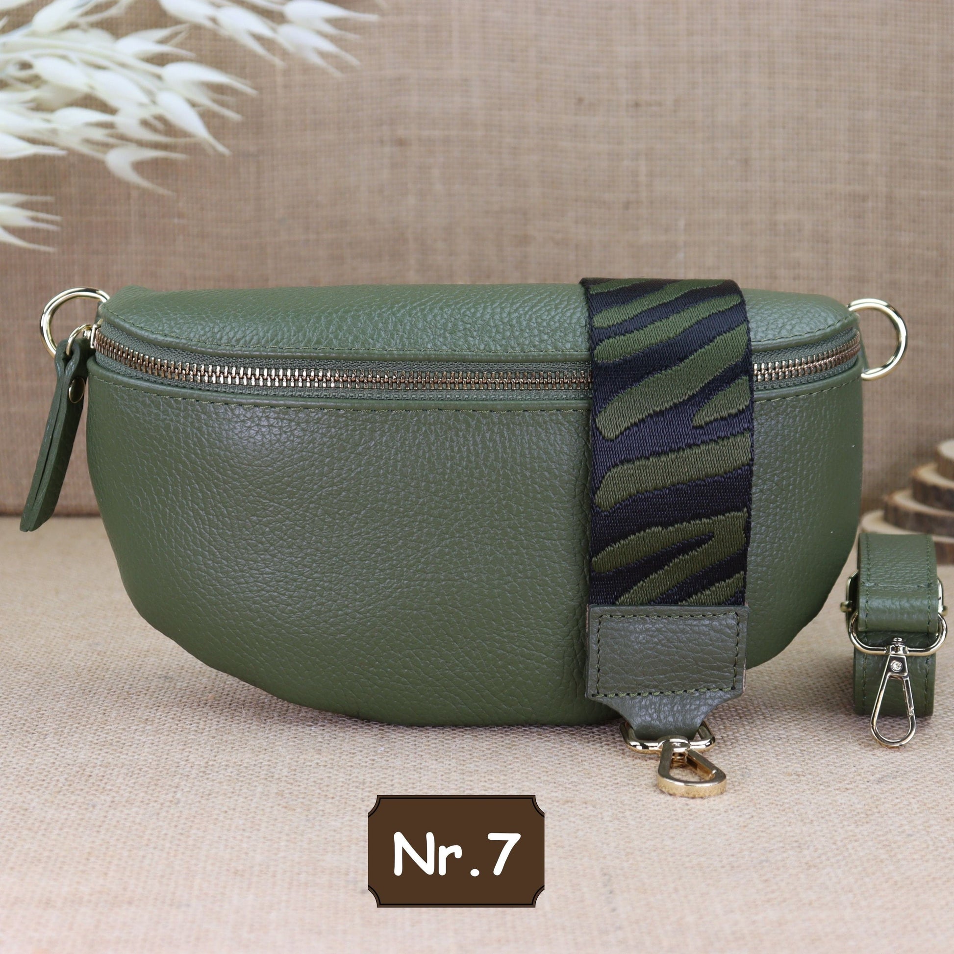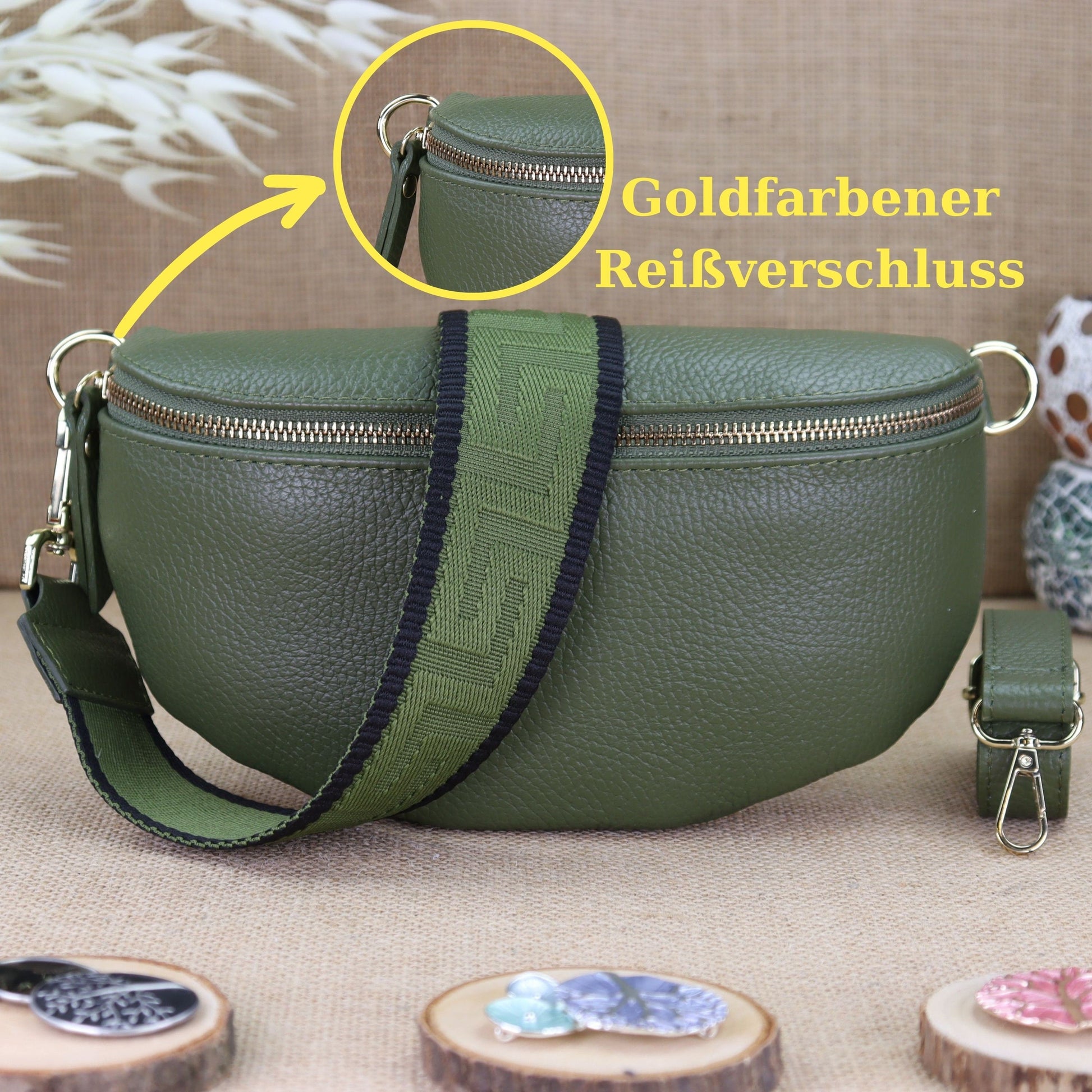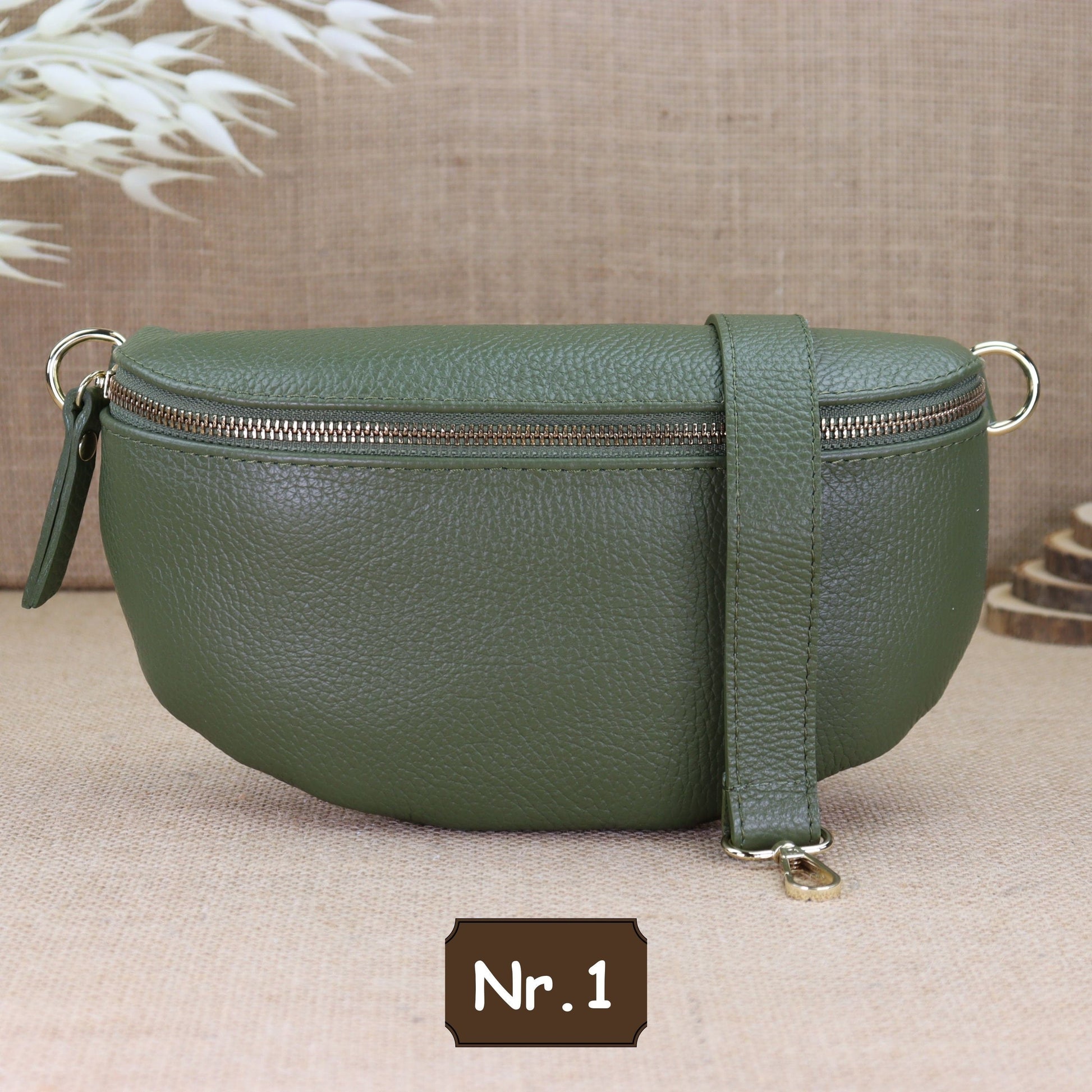 Diese Khaki Leder Umhängetasche mit goldenem Reißverschluss kann auch als Gürteltasche, Schultertasche, Brusttasche, Kosmetiktasche, Bauchtasche, Alltagstasche, Abendtasche, Handtasche, Hüfttasche und Geldbörse verwendet werden.