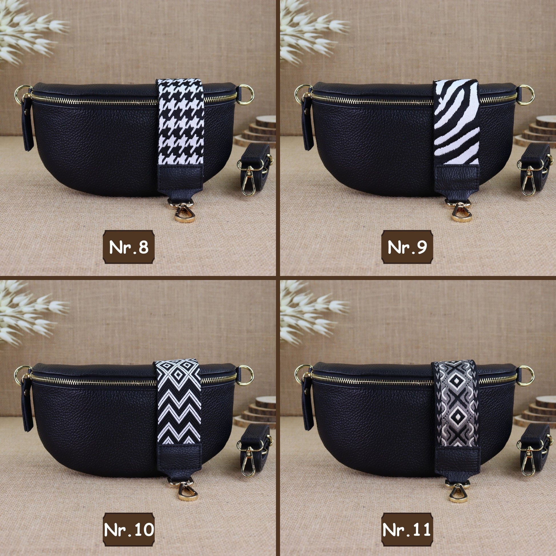 Dieses Taschenmodell ist in einer Vielzahl ansprechender Farben erhältlich, darunter Creme, Beige, Taupe, Khaki, Violettrot, Braun, Cognac, Mint und Nude Pink. Jede Tasche ist mit einem eleganten goldenen Reißverschluss und einem breiten Gürtel versehen. Sie können es über den unten stehenden Link finden.